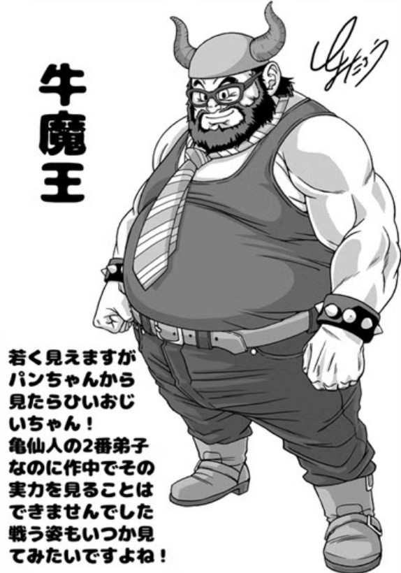 A ilustração foi publicada no site oficial de Dragon Ball como parte do projeto mensal “Toyotarou Tentou Desenhar”, iniciado em dezembro de 2017, que traz personagens ainda não vistos em Dragon Ball Super. Para outubro, Toyotarou escolheu o Rei Cutelo, poderoso governante da Montanha de Fogo e pai de Chi-Chi. Comentando a obra, o criador ressaltou o visual jovem do personagem, observando: “Ele parece jovem, mas… para a Pan-chan, ele é um avô!”
